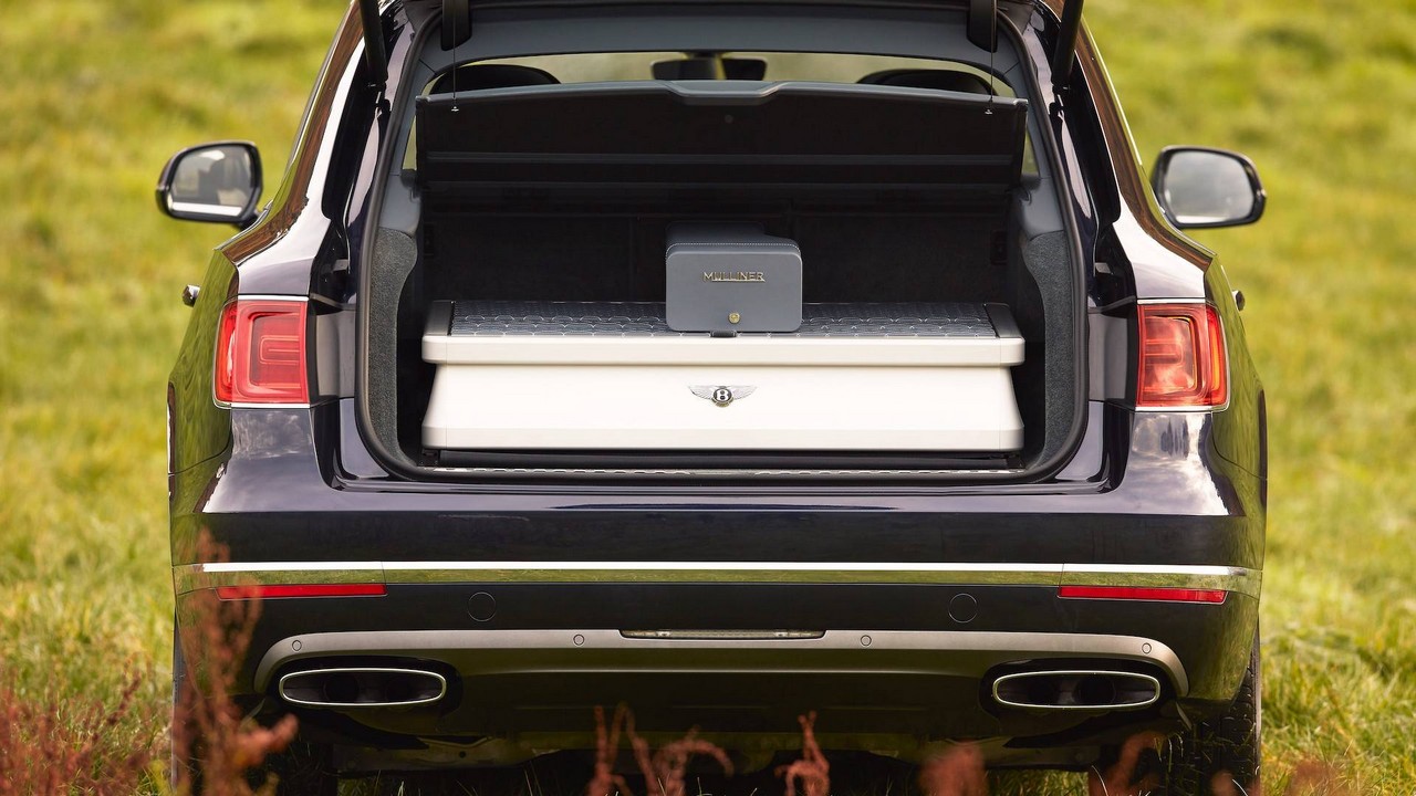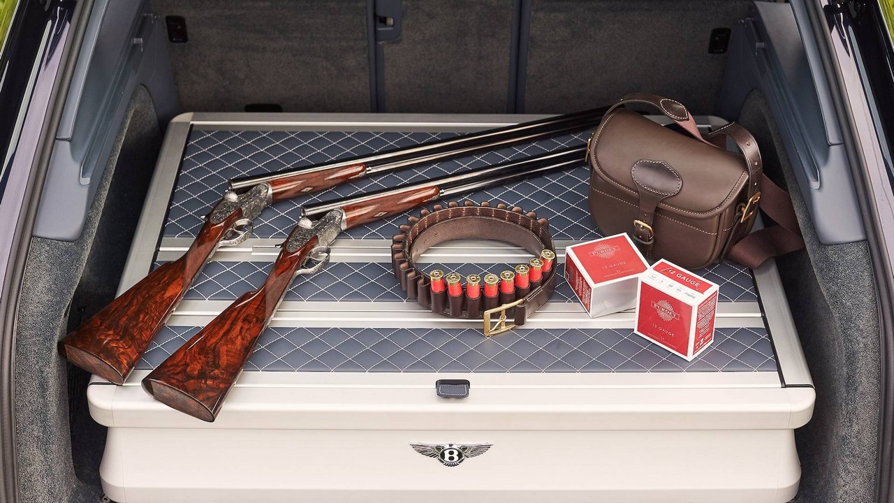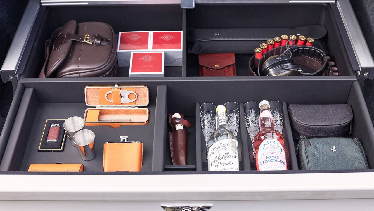 It is quite an exquisite thing though, this Bentley Bentayga Field Sports by Mulliner. There aren’t too many clues on the outside to give away the inner excellence of this car. For that you need to open the tailgate and marvel at the twin-compartment sliding stowage unit featuring tailored sections for the transportation of cartridges, binoculars and protective wear. The handcrafted kit also includes a beautifully made humidor and is lockable for extra security. Your Purdey shotguns, up to two of them, go in an exquisite, leather-trimmed stowage case between the rear seats. And of course there is a cabinet for spirits.