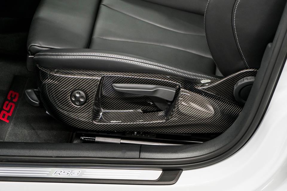 2018 ABT Audi RS3 also includes a number of additional aerodynamic elements and interior finishing upgrades. The main highlights here include add-on front lip and front grille, as well as rear skirt insert, all in glossy black. For the interior, the Bavaria-based company offers different finishing upgrades in carbon and integrated entrance lights with the ABT branding, a gearshift lever badge, and a start/stop button.The package furthermore include ABT exhaust system with two 102 mm double pipes in matte black nestled into the rear skirt, and upgraded brakes.