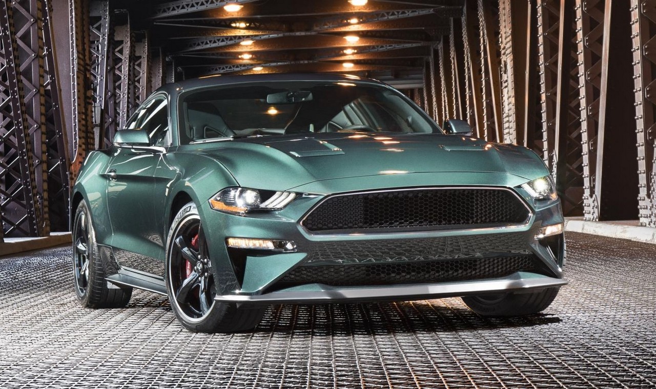 2019 Ford Mustang Bullitt was introduced at the North American International Auto Show alongside the original movie car, accompanied by a film created by Molly McQueen. Obviously, the exterior color is a direct tribute to the original Bullitt Mustang – classic Dark Highland Green exterior paint and subtle chrome accents. You can, of course, order this model in other colors as well, but that kind of ruins the whole point of it. The same goes for the interior and its optional RECARO black leather-trimmed seats with unique green accent stitching. Unless you get these the whole Bullitt theme does not make much sense.