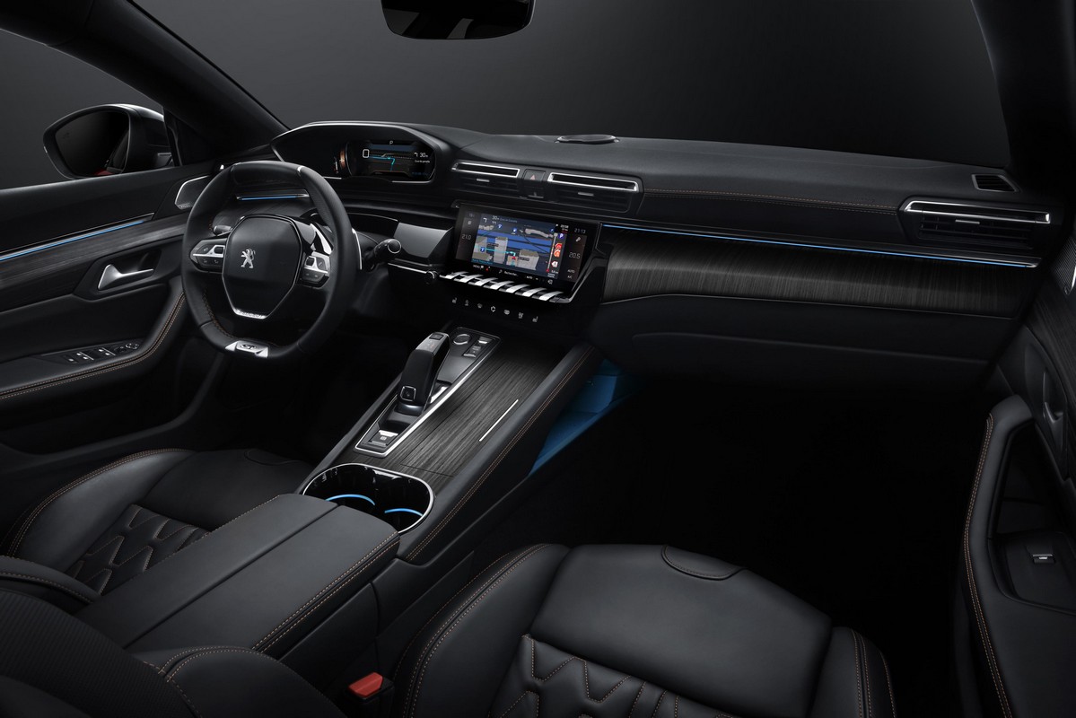But as cool as the exterior design of 2019 Peugeot 508 is, we are more fond of the interior which is a total class act. This is the most luxurious expression of the i-Cockpit to date, featuring full grain leather trimmed steering wheel, a large 10-inch capacitive touchscreen angled towards the driver and a 12.3-inch head-up digital instrument panel. There is also ambiances to choose, including “Boost” and “Relax”. The cabin looks to us like a blend of BMW and Cadillac, with a touch of Audi.