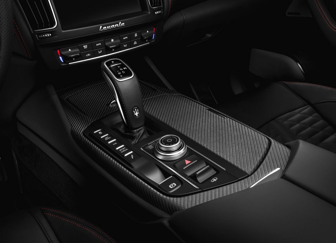 Styling-wise, 2018 Maserati Levante Trofeo is set apart from ordinary models by 22-inch forged aluminium “Orione” wheels, revised fascia and bumpers, new aero parts, and little touches like carbon fibre side bezel blades and a carbon fibre splitter. The car also features piano black accents and full LED Matrix headlights. Inside you get full-grain “Pieno Fiore” natural leather sport seats with contrast stitching and Trofeo logos,  matte carbon fibre trim and paddle shifters, specific instrument cluster graphics, floor mats with metal Trofeo badges and a Maserati clock with a unique dial.
