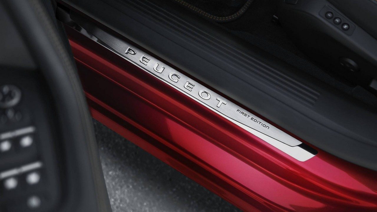Equipped with all the good options and available in two exclusive colors of Dark Blue and Ultimate Red, the Peugeot 508 First Edition is further distinguished from normal models by shiny black-shell front end and 19″ Augusta alloy wheels in grey. Inside the cabin you get black leather upholstery, alcantara accents, and zebrano-type wood decor. Other highlights include perforated full-grain leather steering wheel and satin chrome decor, a black roof liner, Full LED concealed lighting, aluminium pedals and door sills marked First Edition.