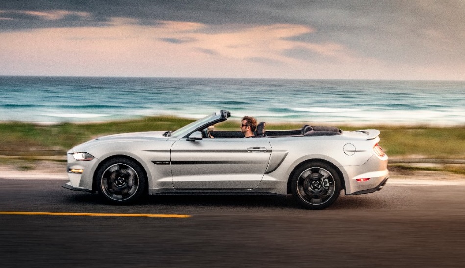 The 2019 Mustang GT California Special does get similar features, such as fading stripes, Ebony Black and Race Red script California Special badge, as well as blacked-out open grille, California 5-spoke wheels, and a front splitter from the performance pack. But to an uninterested eye it looks like a regular GT. The interior is more on the money with black Miko suede-trimmed seats with embossed GT/CS insignia and contrast red accent stitching, and custom embroidered GT/CS floor mats. There is also a host of badges.