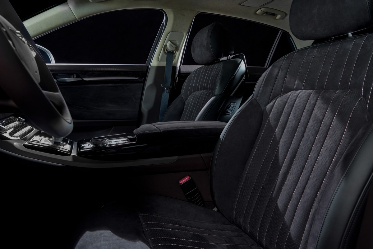 - A Touch of Sensuality: Finished in warm light silver and matte cocoa brown, this G90 epitomizes a cause for celebration. Brown Nubuck leather and desert sand Nappa leather interior offer a smooth embrace to the passenger.