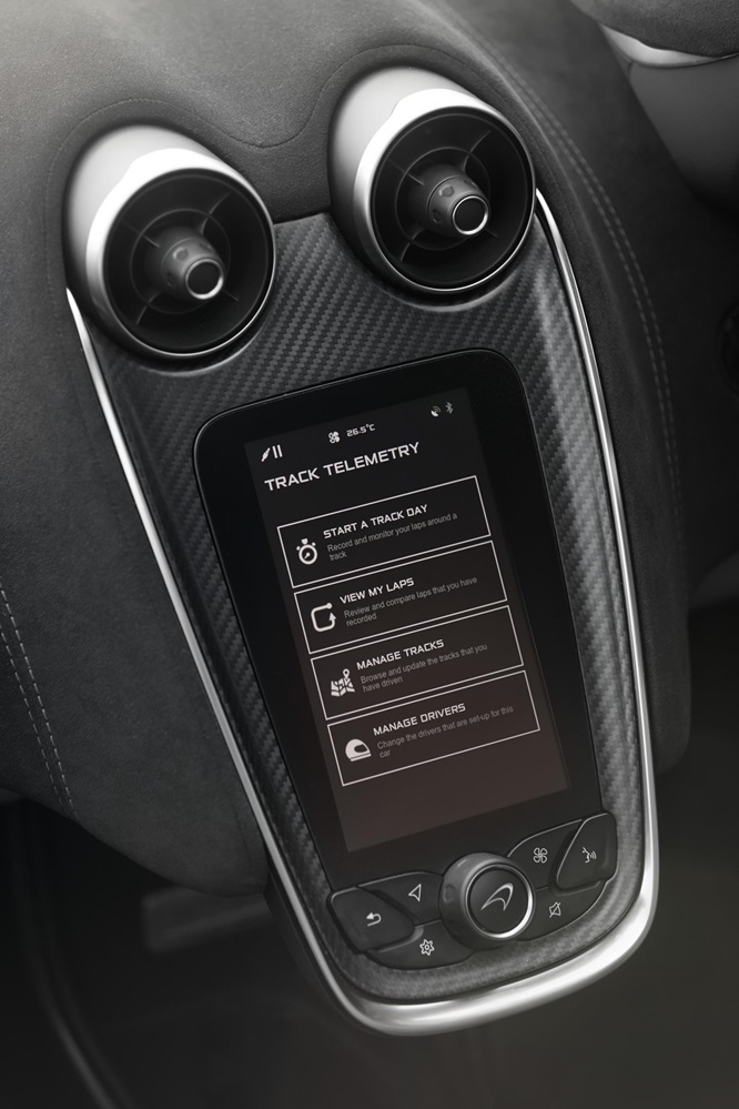 Not sure if that is the optimum way of going about it, but McLaren 570S Spider Track Pack comes with some nice options that could appeal to customers even if they are never going to put them to use. The main features of the package include carbon fiber interior upgrade with door inserts, tunnel sides, extended gearshift paddles, steering wheel spokes, door and lower centre console, 10 spoke light alloy wheels, light sport exhaust system, and dark palladium roof.