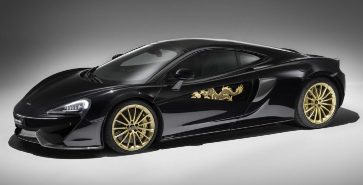 On the outside McLaren 570GT Cabbeen Collection features a MSO Obsidian Black paint finish, garnished with hand-painted dragon door inserts. Complementing the golden dragons is a set of 15-Spoke GT wheels and brake calipers all finished in Bespoke Gloss Speedline Gold. The interior features are in the same vein, and consist mainly of rear luggage deck featuring vivid gold embroidered dragon sewn by Kang Huifang, a preserver of Chao Embroidery, which is apparently a big thing over there.