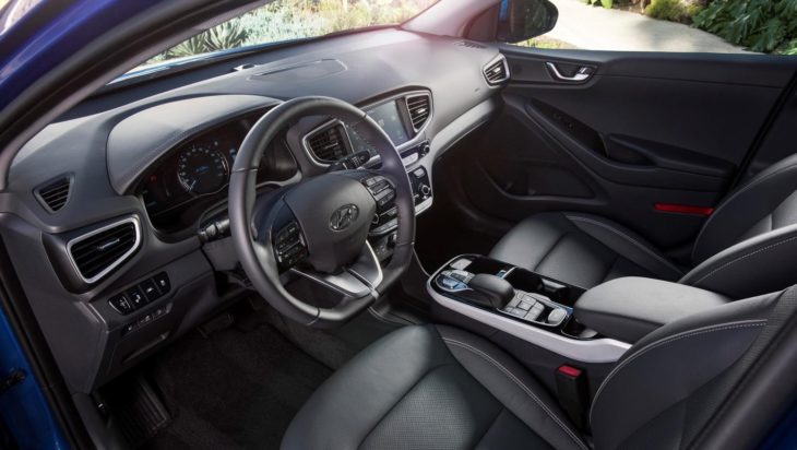 As before, the party trick of Hyundai Ioniq Plug-In Hybrid remains the powertrain, which can be had in hybrid, plug-in hybrid and electric guises. The Hybrid Blue is a 58 mpg 139 horsepower unit, the plug-in hybrid a 160 horsepower unit that promises 29 miles of electric driving as well as 119 MPGe in EV mode and 52 MPG in hybrid mode, and finally the Ioniq Electric offers 118 horsepower, a range of 124 miles, and 136 MPGe rating. The latter has a single-speed reduction-gear transmission, while the hybrid versions use a a six-speed EcoShift dual-clutch transmission (DCT).