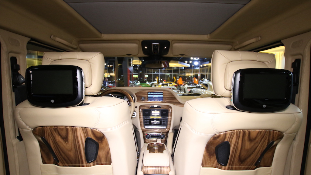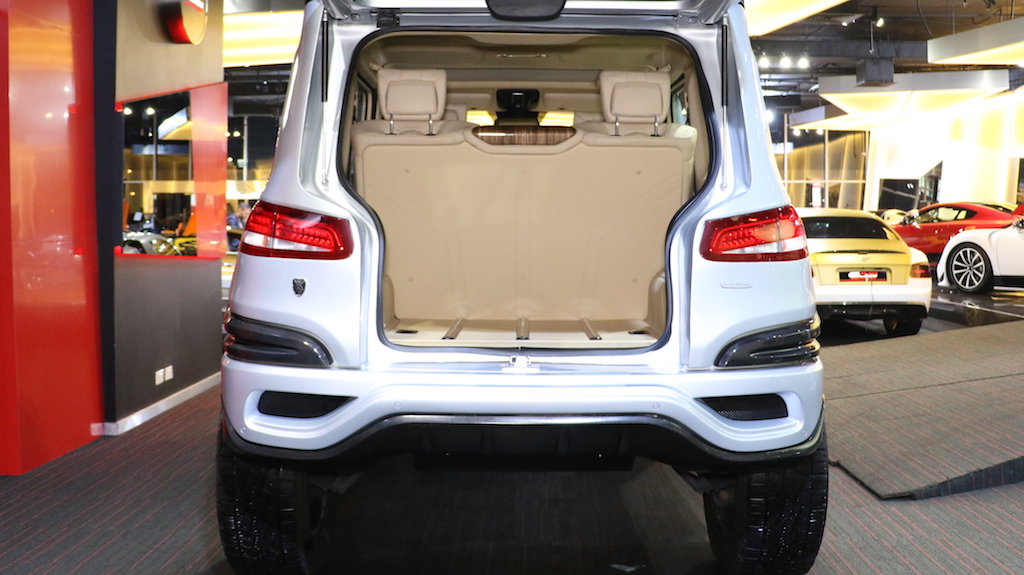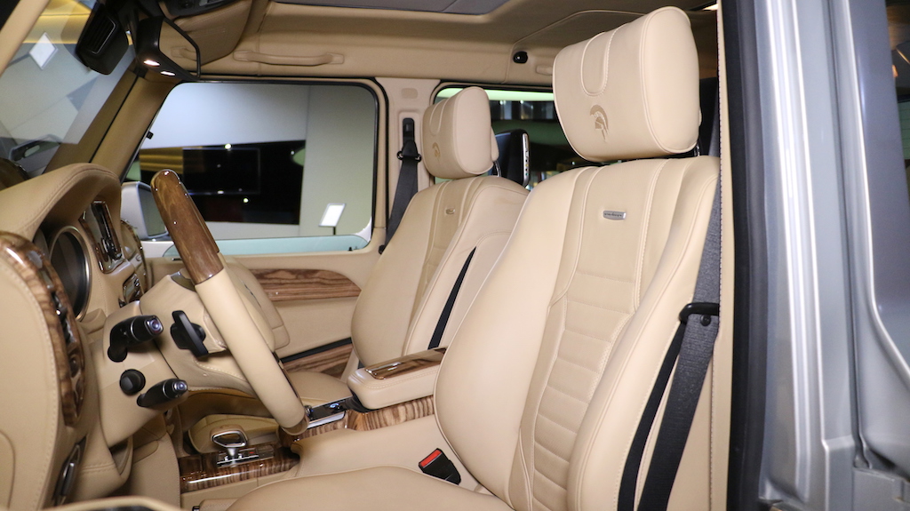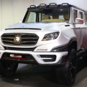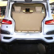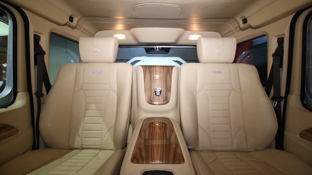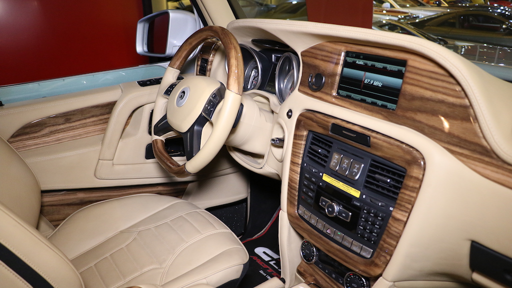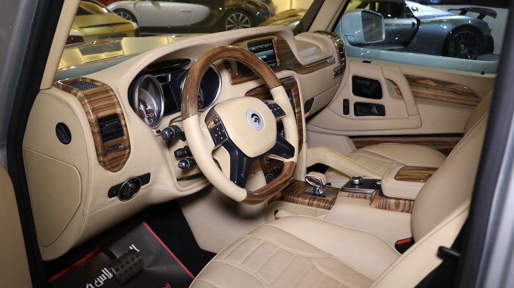 ARES X-Raid G63 features the 5.5 liter bi-turbo AMG V8 which the tuner has upgraded to 760 horsepower. The carbon fiber body reduces the overall weight by as much as 200 kg compared to the standard G63, so the X-Raid is pretty quick. The luxury SUV also features jacked up suspension and bespoke 22 inch wheels. As for the interior, it is also bespoke and features a redesigned dashboard and a new rear passenger compartment with two individual seats and a large center console. This particular example has a Cream interior garnished with light-colored wooden trims which look very warm and cozy.