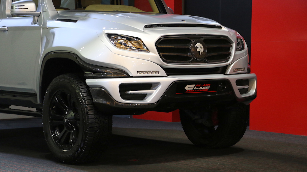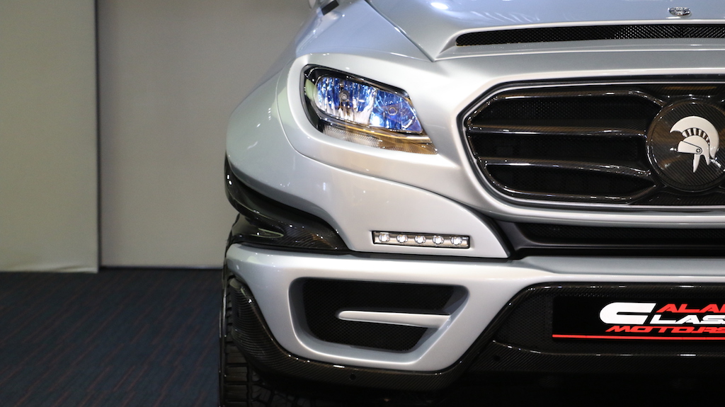 We had seen this beast in computer renderings before, but it’s the first time we get to check it out in the flesh, or metal to be more precise, courtesy of the folks at Alain Class Motors who have secured a pristine 2014 example of the extraordinary ARES X-Raid. The extent of modifications applied to this car is such that you would have to stare at it a while before you even realize it is a G63 AMG under the skin. There is new fascia on the front and rear, new side panels, skirts, fenders, tailgate, pretty much everything has been changed and made more dramatic.