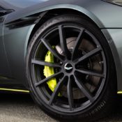 Most people, however,would be interested in the Aston Martin DB11 AMR because of the way it looks. Exposed carbon fibre and gloss black detailing are the main features of the exterior, along with dark headlight surrounds and smoked tail lamps complimented by dark front grille and tailpipes; gloss black roof, roof strake plus side sills and splitter. Inside the cabin monotone leather and alcantara upholstery and a bold contrasting central lime stripe as well as a sport steering wheel.