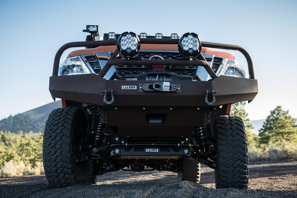 Designed as an overland vehicle, Nissan Armada Mountain Patrol also boasts many comfort and convenience features. You get a Lowrance navigation system and Rugged Radios off-road radio system, a Rhino Racks aluminum back-bone pioneer tray, ARB pull-out drawer system, Pelican gear cases, Dometic refrigerator/freezer and Otterbox Venture coolers. Mechcnailly, there is heavy-duty coil-over suspension and extended A-arms,17-inch Icon Rebound wheels and Nitto Ridge Grapplers 35/12.25/17 tires, and Magnaflow cat-back exhaust system for the 5.6 liter V8 engine.
