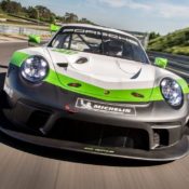 The GT3 R race car features a aluminium-steel composite construction with roof, front hood and fairing, wheel arches, doors, side and tail sections as well as the rear lid and interior trim made from extra light carbon composites. What’s more, all windows consist of polycarbonate. Add to that a Porsche sequential six-speed constant-mesh gearbox, race exhaust system and six electronically operated throttle valves,and you end up with a serious performance machine.