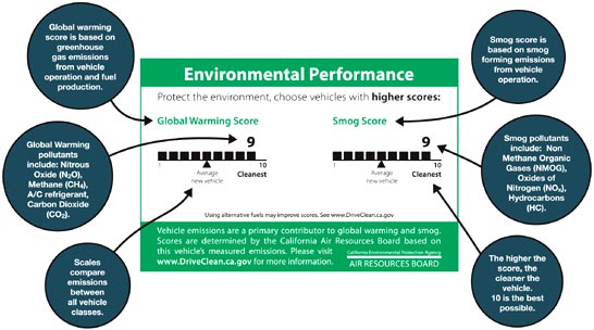 Starting Jan. 1, every 2009 model year and newer car sold in California will be required to carry a label that clearly ranks the vehicle's environmental impact, in addition to the existing requisite smog ratings.There…